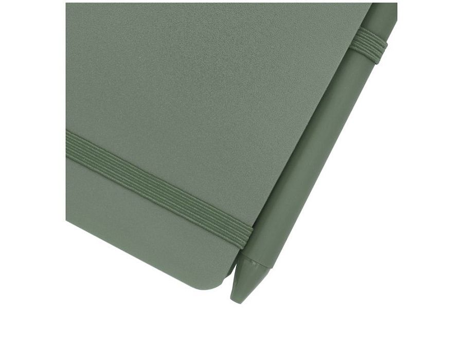 Блокнот Thalaasa формата A5 в твердой обложке изготовлен из переработанного океанического пластика и содержит 80 линованных листов кремовой бумаги плотностью 70 г/м². Блокнот имеет закругленные углы, эластичную застежку и петлю для ручки. Шариковая ручка с черными чернилами также изготовлена из переработанного океанического пластика. Длина непрерывной линии: 1000 метров. Размер пера: 1,0 мм.
