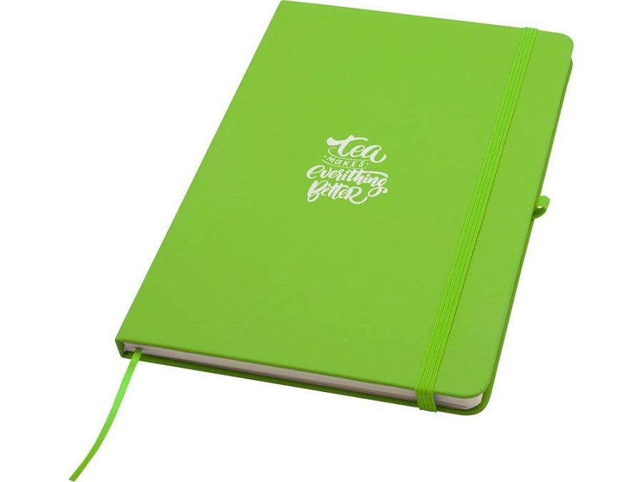 Блокнот Spectrum Plus формата А5 в твердой обложке с закругленными углами — это не только необходимая вещь в офисе, но и прекрасная возможность для продвижения вашего бренда. Картонный блокнот имеет мягкую на ощупь обложку и 80 линованных листов кремового цвета плотностью 70 г/м², идеально подходит для записи быстрых идей или длинных заметок. Блокнот оснащен петлей для ручки, эластичной застежкой, ленточкой-закладкой и карманом-гармошкой.