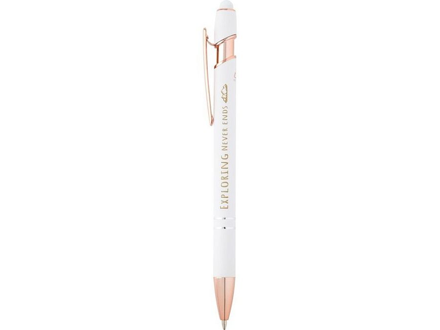 Шариковая ручка Nanna с покрытием из розового золота имеет корпус из переработанного алюминия и сенсорный стилус из силикона. Переработанный алюминий уменьшает количество отходов на свалках и помогает сохранять природные ресурсы для сокращения выбросов парниковых газов. Цвет чернил: синий. Длина непрерывной линии: 800 метров. Размер пера: 1,0 мм. Recycled Aluminium.