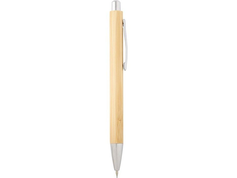 Набор Oblys состоит из шариковой ручки и механического карандаша, корпуса которых изготовлены из бамбука. Шариковая ручка имеет черный стилус и хромированный металлический зажим. Цвет чернил: черный. Размер пера: 1,00 мм. Длина непрерывной линии: 600 метров. Механический карандаш также имеет хромированный металлический зажим. Размер пера: 0,5 мм.