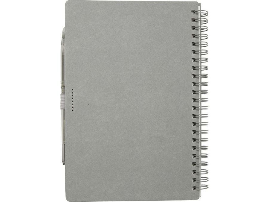 Многоразовый набор из ручки и блокнота в мягкой обложке из каменной бумаги. Блокнот имеет обложку из картона, закругленные углы и 32 листа линованной бумаги плотностью 120 г/м². В производстве каменной бумаги не используется дерево, а на сам процесс изготовления затрачивается гораздо меньше энергии в сравнении с производством переработанной или целлюлозной бумаги. Сзади имеется карман для хранения черной протирочной ткани (входит в комплект). Ручка из переработанного пластика с стираемыми чернилами, прозрачным корпусом, белым ластиком сверху и однотонной цветной рукояткой. Цвет чернил: черный. Длина непрерывной линии: 250 метров. Размер пера: 0,7 мм.