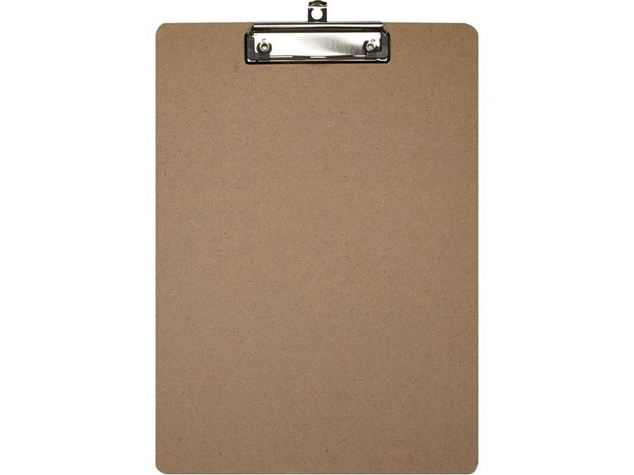Удобный планшет из МДФ (древесноволокнистая плита средней плотности). Зажим, удерживающий лист бумаги, изготовлен из железа и пластика PP. Размер: 32 x 23 x 0,24 см. MDF.