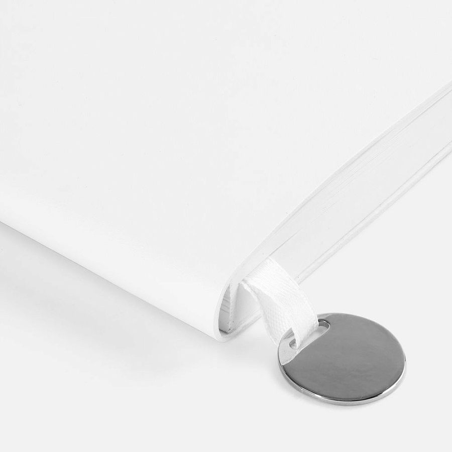 Ежедневник с гибкой обложкой, выполнен из материала Waltz, белый BB, дополнен ляссе в цвет обложки с металлическим шильдом.