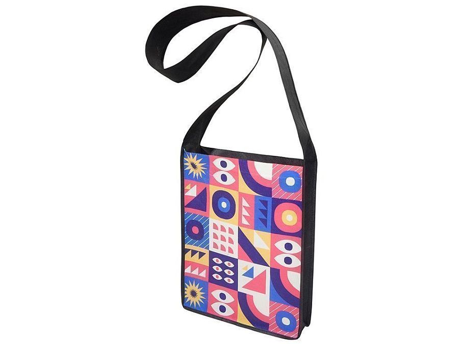 Удобная наплечная сумка-мессенджер с большой вместительностью. Подойдёт как альтернатива классических портфелей для выездных совещаний и других мероприятий. Донная складка позволяет разместить в необходимые документов или другие вещи, при этом позволяя компактно хранить сумку в сложенном виде. Брендирование производится полноцветной печатью в край с обеих сторон. На поверхности сумки можно разместить лого компании или выставки, а также полноразмерный принт любой сложности.
