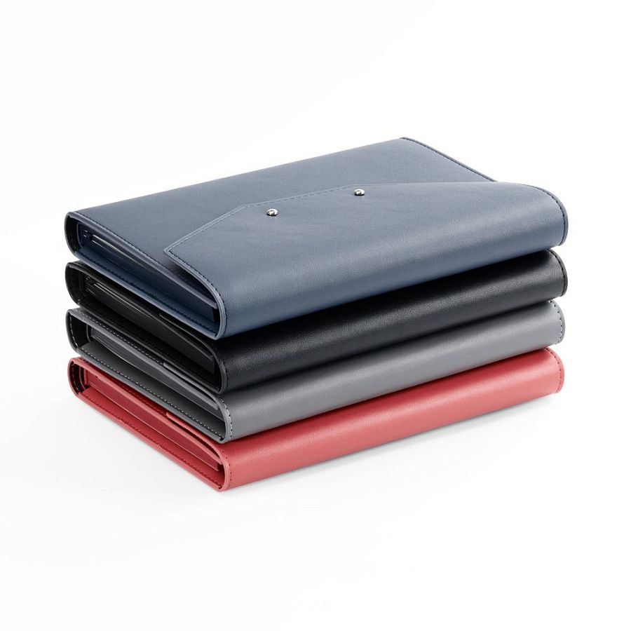 Ежедневник-органайзер в мягком переплете, формат А5+, с карманами для визиток и документов, петлей для ручки. Дополнен ляссе и капталом в цвет обложки. Клапан с прорезями застегивается на кобурные металлические кнопки.