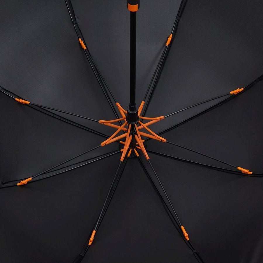Легкий и невероятно прочный каркас из стеклопластика не боится порывов ветра. Сдержанный дизайн оживляет яркая деталь: цветные акценты на каркасе видны только при раскрытии зонта.