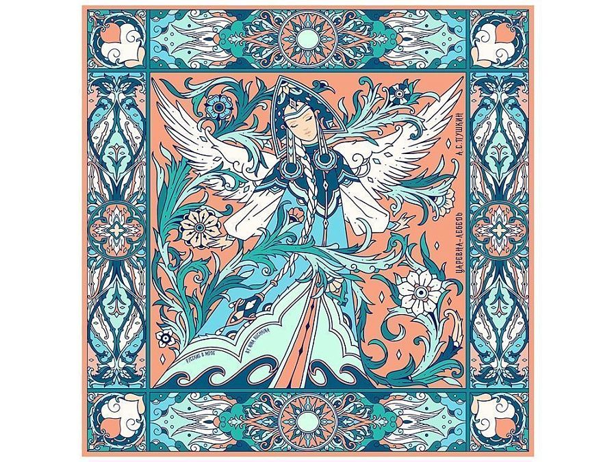 Платок «Кремль – Москва» в шелке воплощает шедевр ювелирного искусства Карла Фаберже из серии подарков для русской императорской семьи. В центре полотна расположен Успенский собор в обрамлении башен Московского Кремля. Утонченный рисунок, яркое цветовое решение и глубокий символизм дизайна платка созданы для эффектного акцента праздничного образа.