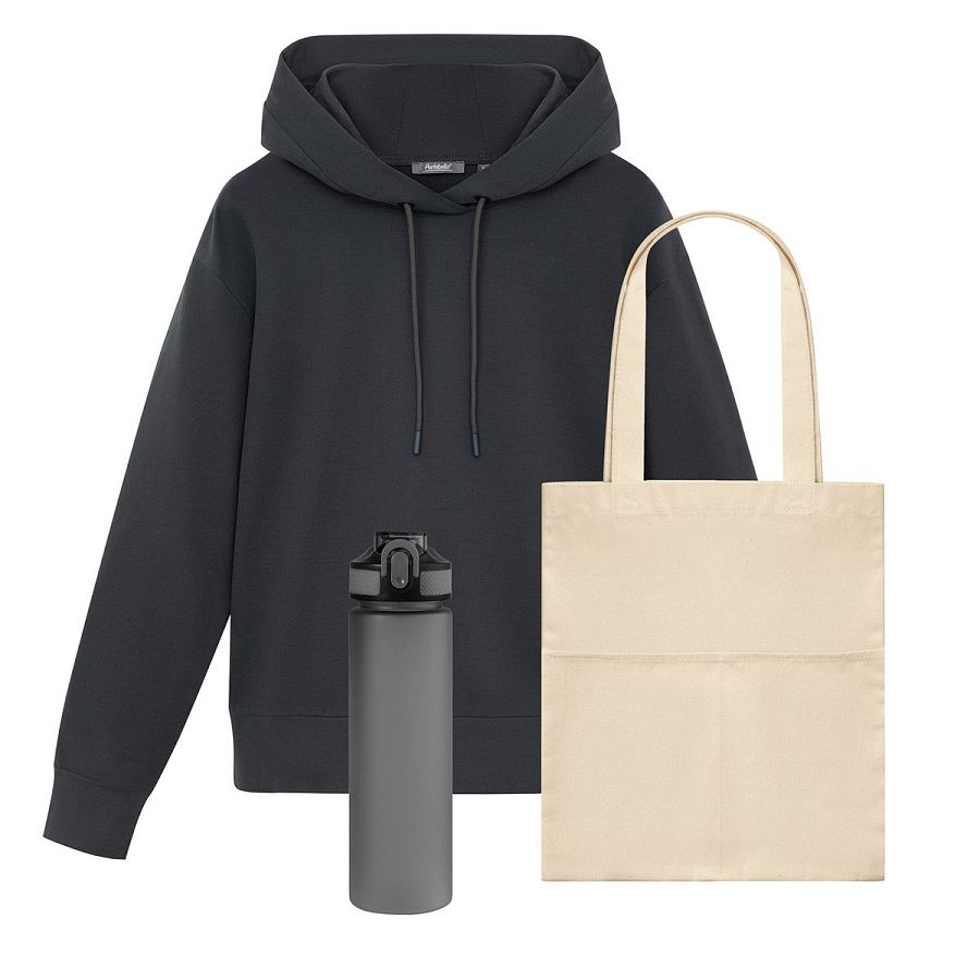 Мягкое худи с продуманным универсального кроя обеспечит тепло и комфорт, а качественные аксессуары пригодятся в любой ситуации.