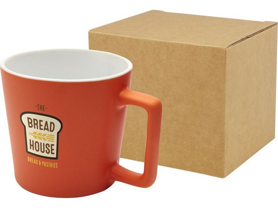 Керамическая кружка с современным дизайном и матовой отделкой. Объем 370 мл. Можно мыть в посудомоечной машине. Поставляется в упаковочной коробке из переработанного картона. Керамика.