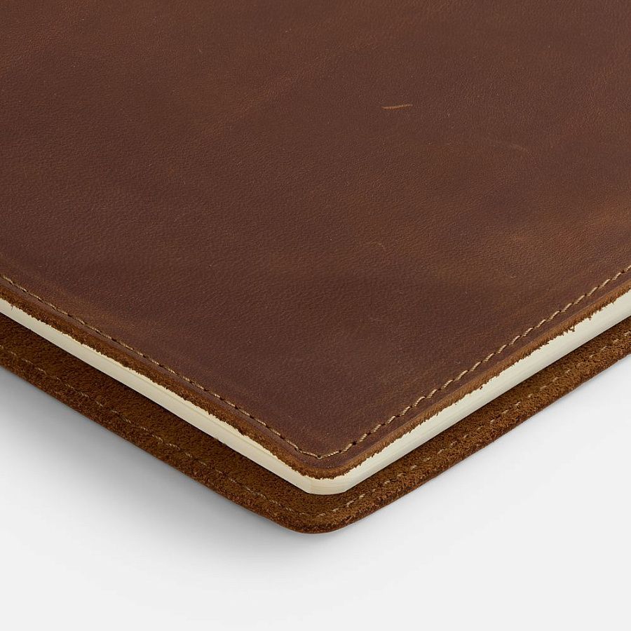 Ежедневник изготовлен из плотной и прочной натуральной кожи Crazy Horse. На его поверхности довольно быстро появляется неповторимый рисунок из потертостей и складок — следы времени придают материалу изысканный винтажный вид, делая каждый предмет уникальным в своем роде. Так изделия, подобно благородным напиткам, со временем приобретают лишь большую ценность.
