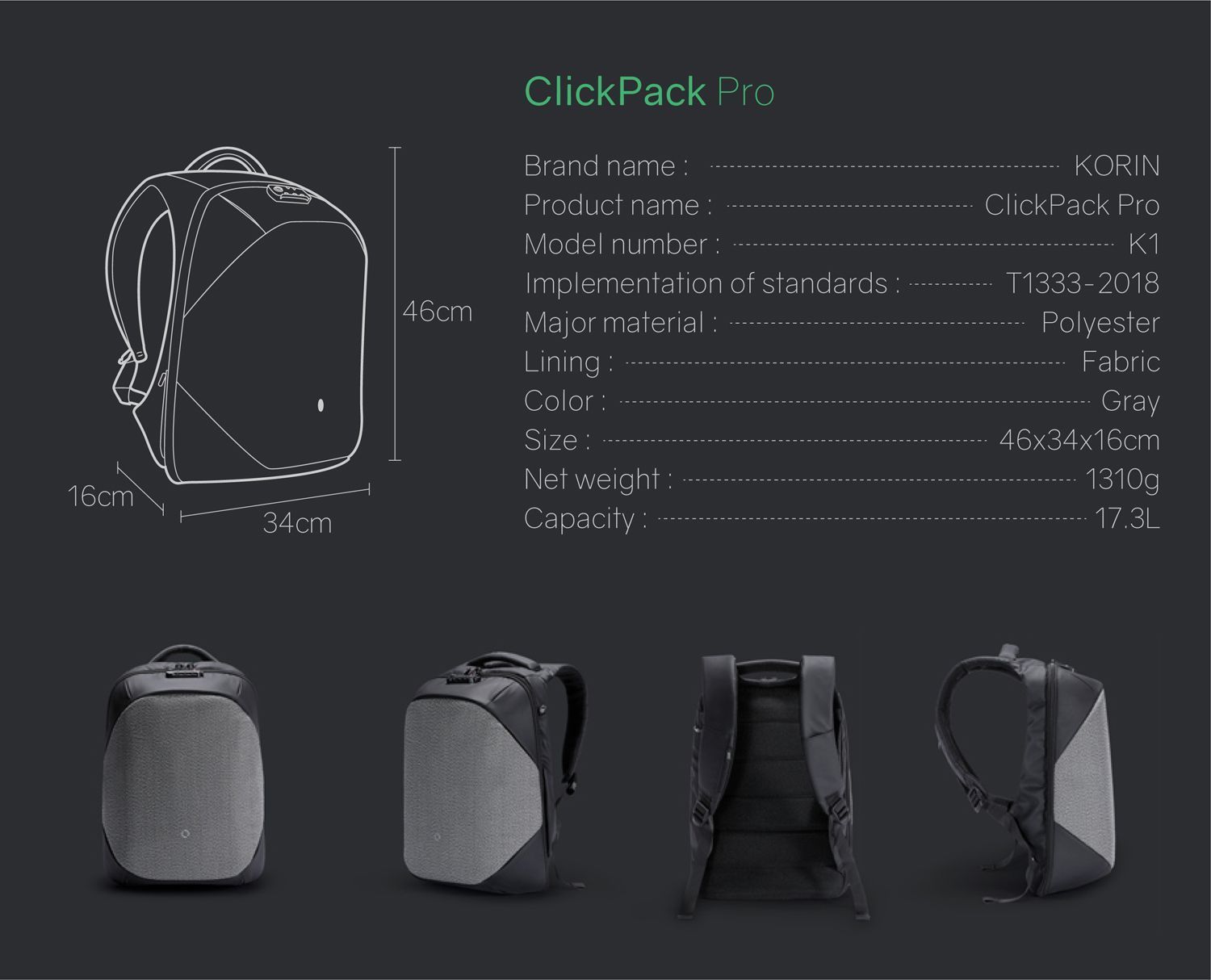 • Размер рюкзака 46х34х16 см