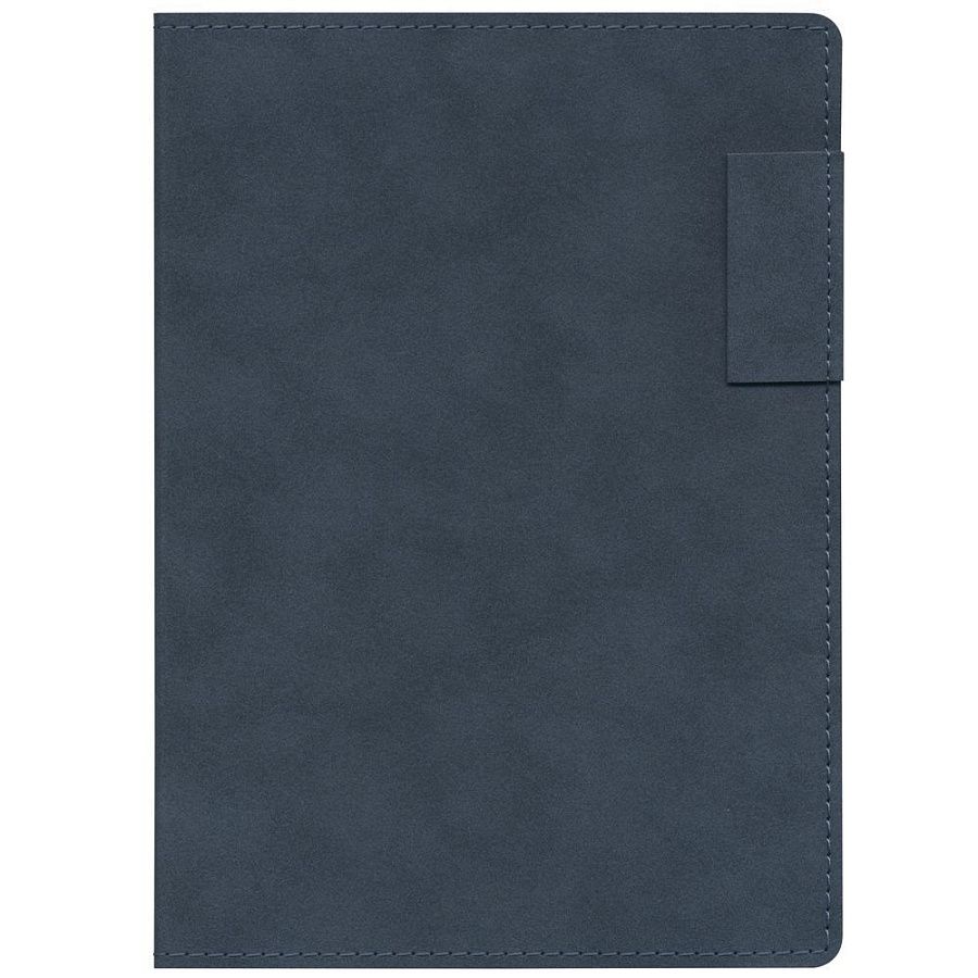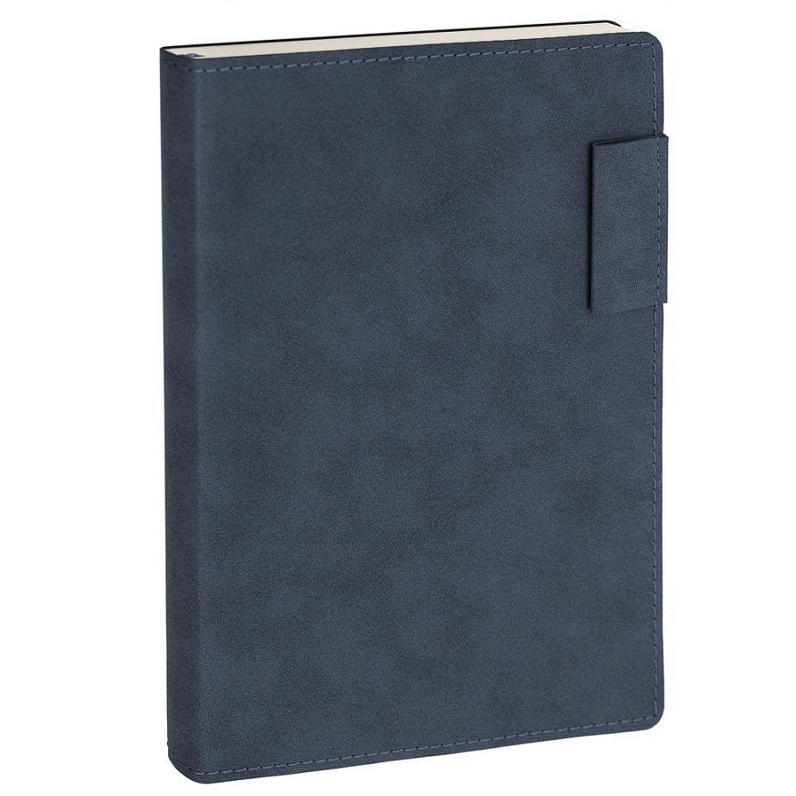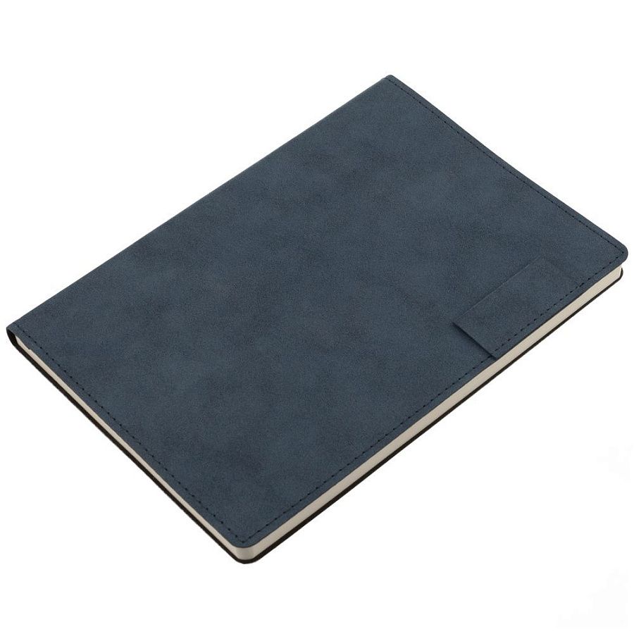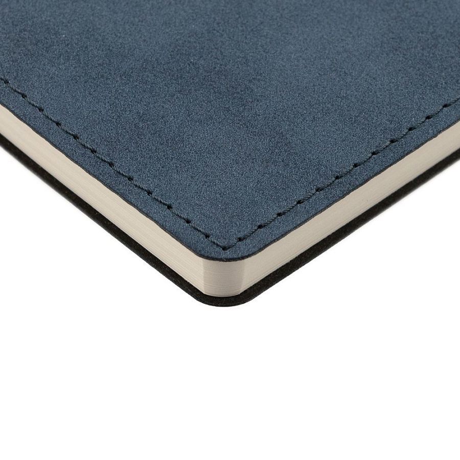 Ежедневник с гибкой обложкой, выполнен из материала Nubuck, темно-синий ХХ, дополнен петлей-лейблом для ручки и ляссе в цвет материала.