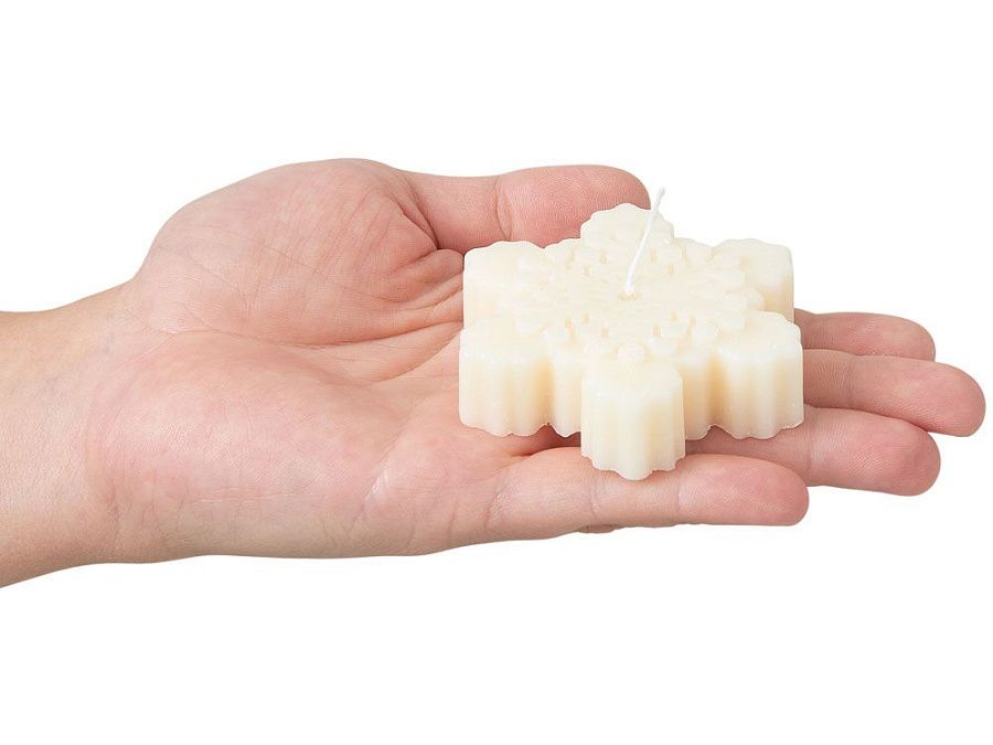Свеча «Снежинка» — это зимнее настроение в каждой детали. Её изящная форма и натуральный состав делают её идеальным акцентом в вашем уютном пространстве.