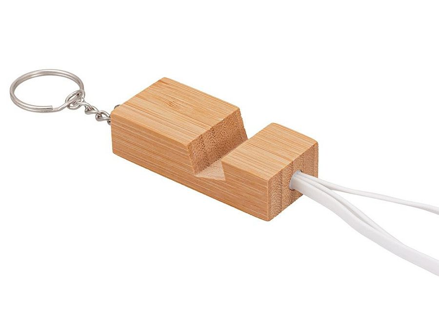 Корпус кабеля выполнен из натурального бамбука — экологически чистого и прочного материала. Деревянная подставка не только защищает кабель от перегибов, но и служит удобной опорой для телефона при видеозвонках, прослушивании музыки или просмотре видео.