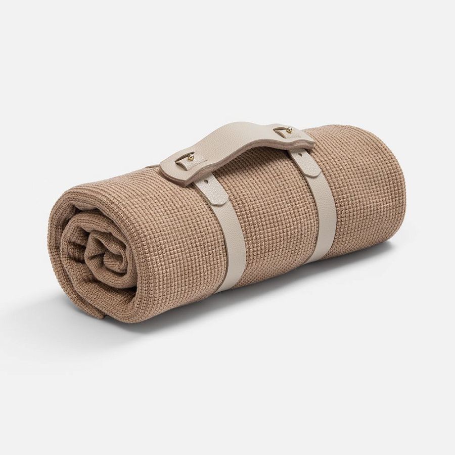 Плед Aviator от бренда Intarsio решительно зовет в путешествие. Объемный и легкий, он удобно складывается благодаря ремню для переноски, что позволяет брать его с собой везде, куда бы ни вел путь. Благодаря кнопке с кожаной отделкой плед становится накидкой — комфортным аксессуаром и одновременно элементом стиля.