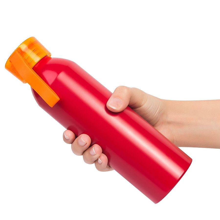 Алюминиевая матовая бутылка с пластиковой крышкой.