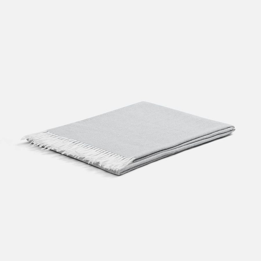 Классический рисунок «елочка» не слишком привлекает внимание, но в то же время добавляет изюминки. Смешанный состав пряжи продлевает срок службы и существенно облегчает уход за пледом.