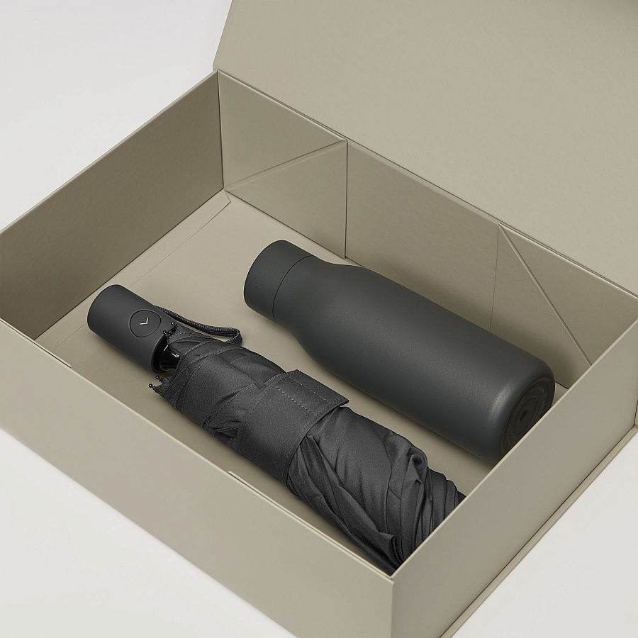 Набор с зонтом — практичное и продуманное решение для подарка тем, кто ценит функциональность и стиль в повседневных аксессуарах. Набор подойдёт как для ежедневного использования в городских условиях, так и для путешествий — он сочетает в себе надёжность, удобство и современный дизайн.