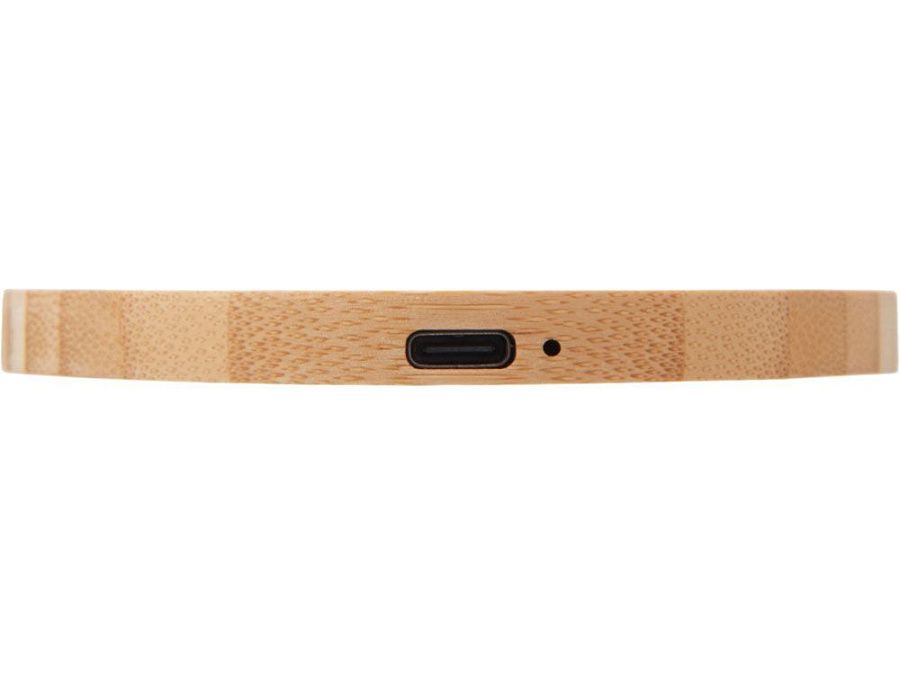 Заряжайте устройства с элегантностью и заботой о планете — с беспроводным зарядным устройством на 15 Вт, выполненным из натурального бамбука и переработанного ABS-пластика. Это не просто функциональный гаджет, а стильный элемент интерьера, который органично впишется в ваш дом, офис или коворкинг. Благодаря поддержке быстрой беспроводной зарядки до 15 Вт, ваш смартфон восполняет энергию без лишних проводов и суеты. А встроенная белая подсветка логотипа добавляет изюминку: ваш бренд или инициалы мягко светятся при зарядке, создавая атмосферу уюта и индивидуальности. Идеальный выбор для тех, кто ценит экологичность, технологии и эстетику.