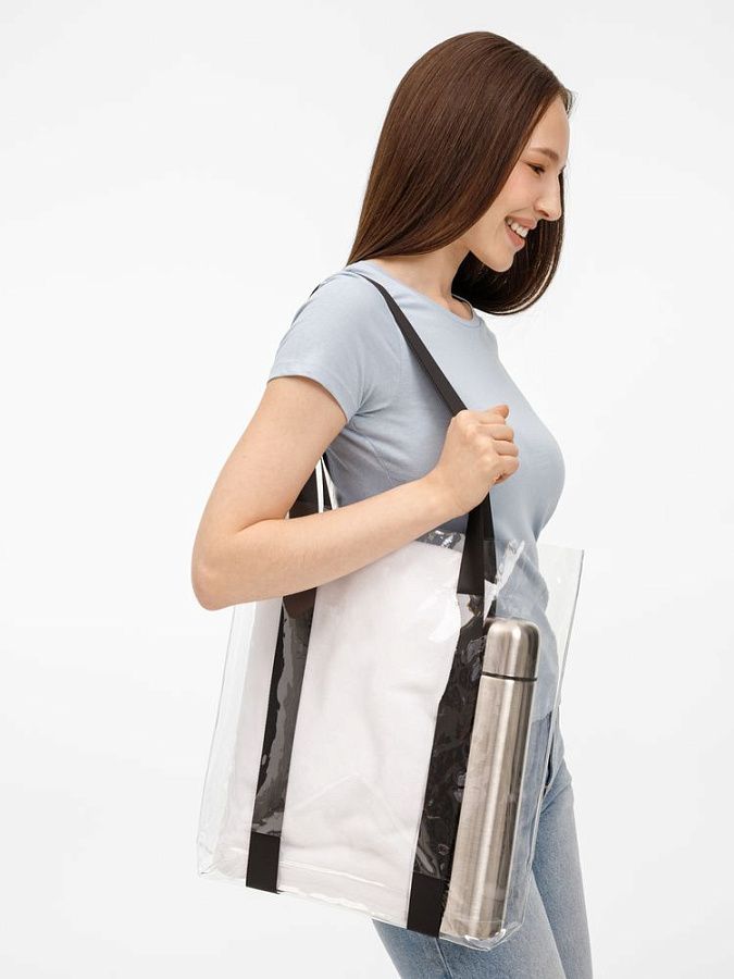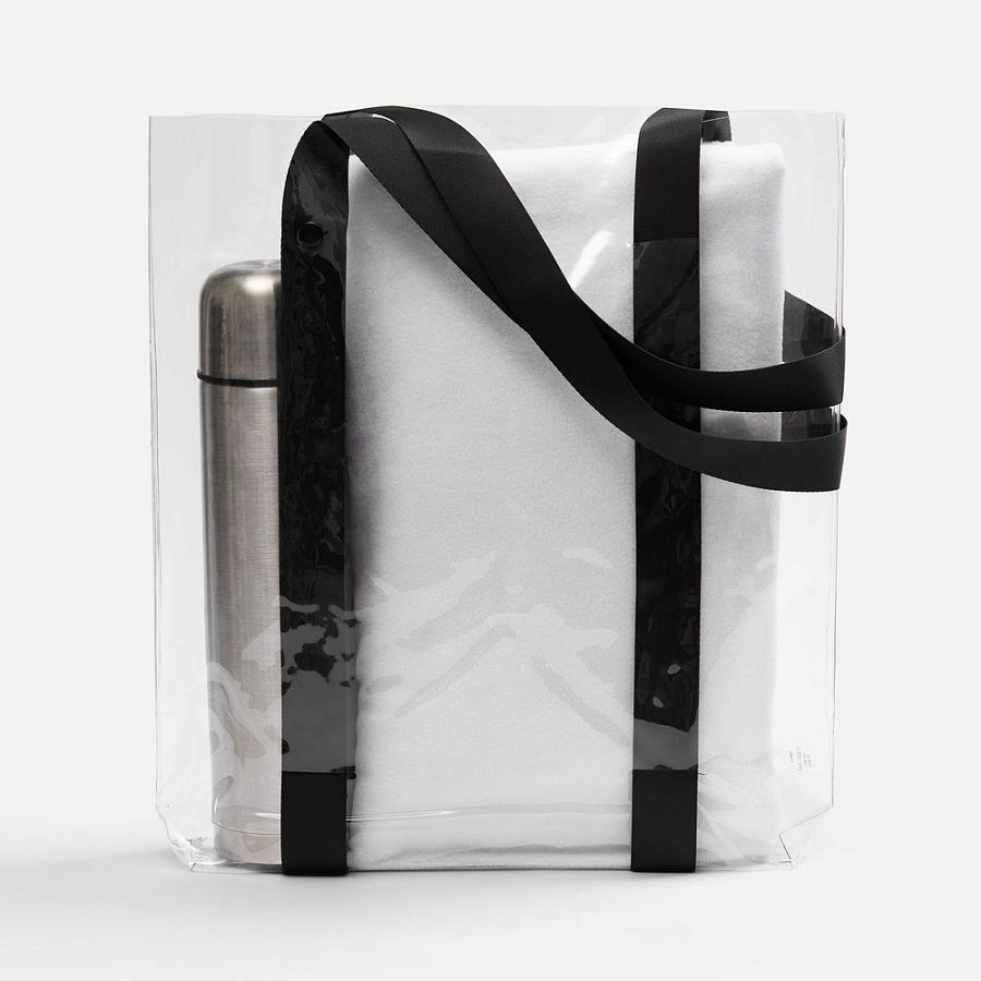 Прозрачные сумки никогда не выйдут из моды. А цветные ручки легко впишутся в брендбук и точно передадут настроение, которое хотелось бы транслировать.
