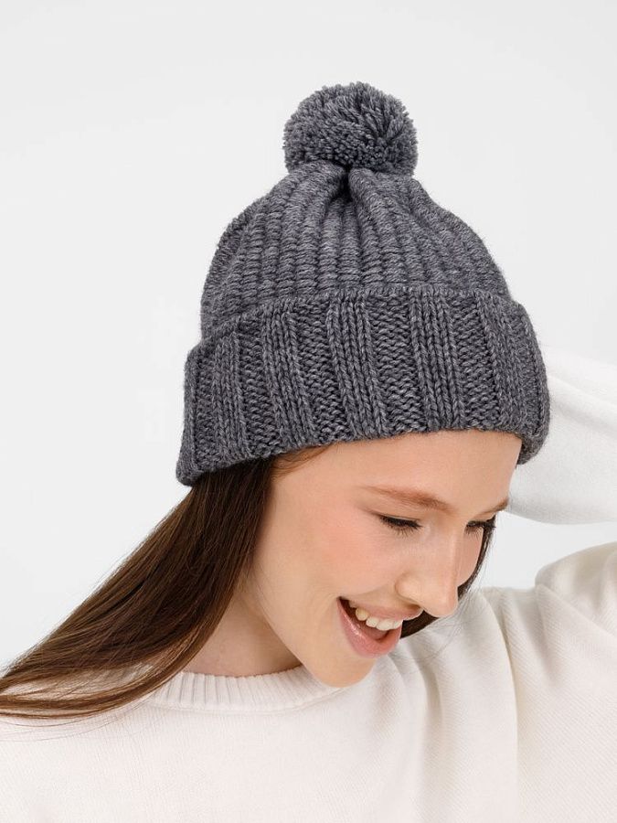 Однослойная шапка Frissonelle из полушерстяной пряжи рельефной вязки сохраняет тепло без лишней тяжести. Эластичный отворот мягко фиксирует шапку, не сдавливая голову, а пышный помпон добавляет лаконичный очаровательный акцент, завершая образ. Эта модель станет верным спутником для городских прогулок в любую погоду.