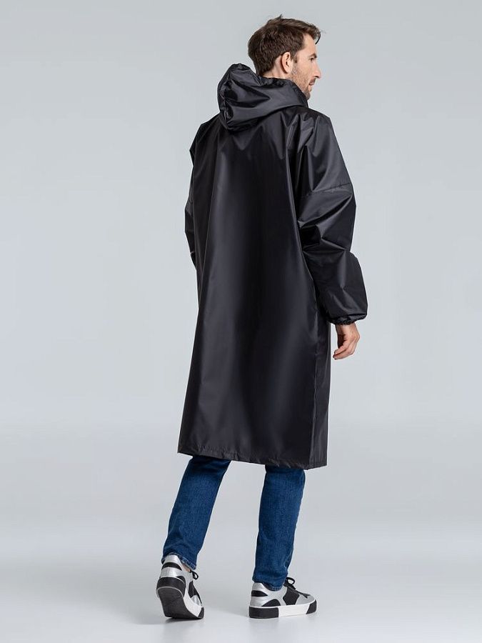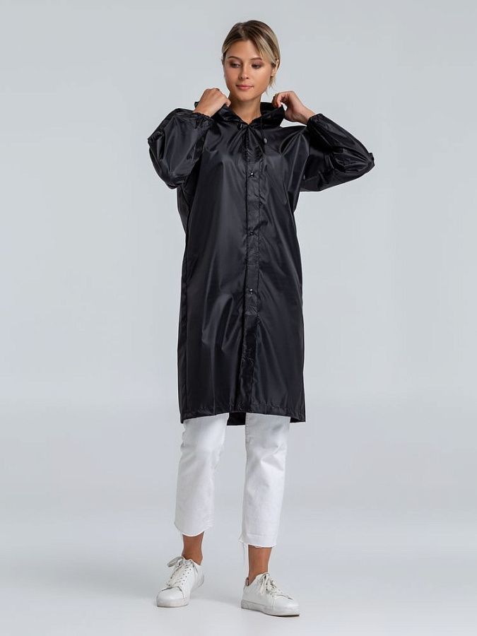 Плащ-дождевик из ткани оксфорд на кнопках с капюшоном.