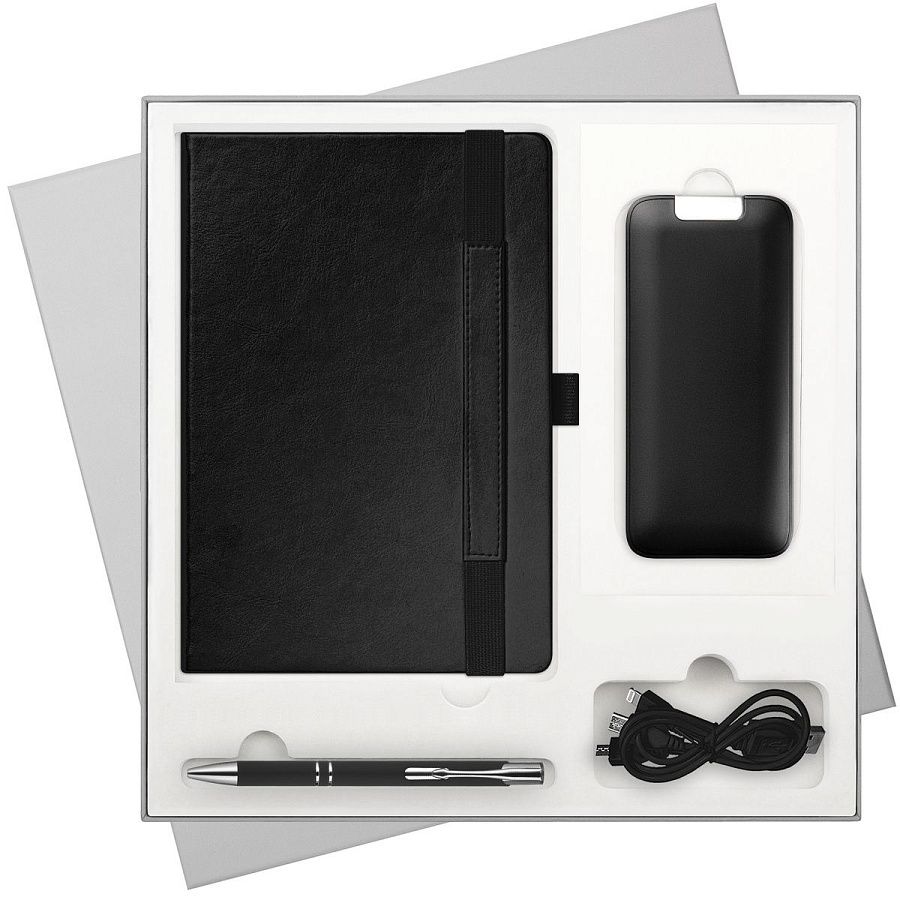 В комплекте: стильный ежедневник для планирования и любых записей, ручка для комфортного письма и внешний аккумулятор, который позволит оставаться на связи в любой ситуации.