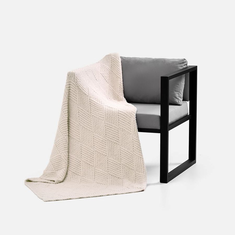 Изделие завораживает с первого взгляда: рельефный узор дарит пледу выразительность и премиальный вид. Плотная, увесистая структура материала мягко обволакивает и приятной тяжестью ощущается на теле.