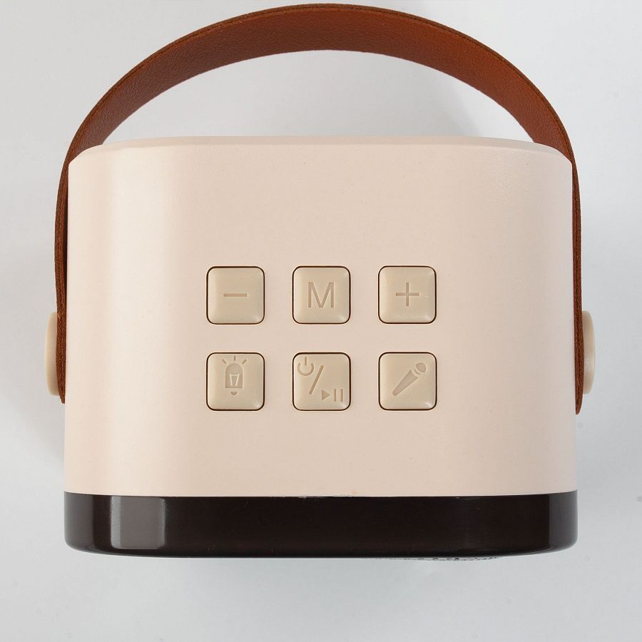 Bluetooth-колонка мощностью 3W с аккумулятором на 600 mAh. В комплекте два микрофона. Яркая RGB-подсветка с разными режимами задает неповторимую атмосферу. Доступно воспроизведение c USB-флешек, TF-карт, проводом через разъем jack.