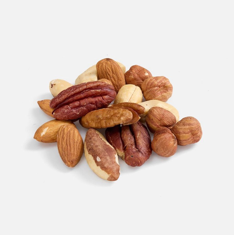 Состав: ядро бразильского ореха, орех пекан, ядро фундука, ядро миндаля, орех кешью.