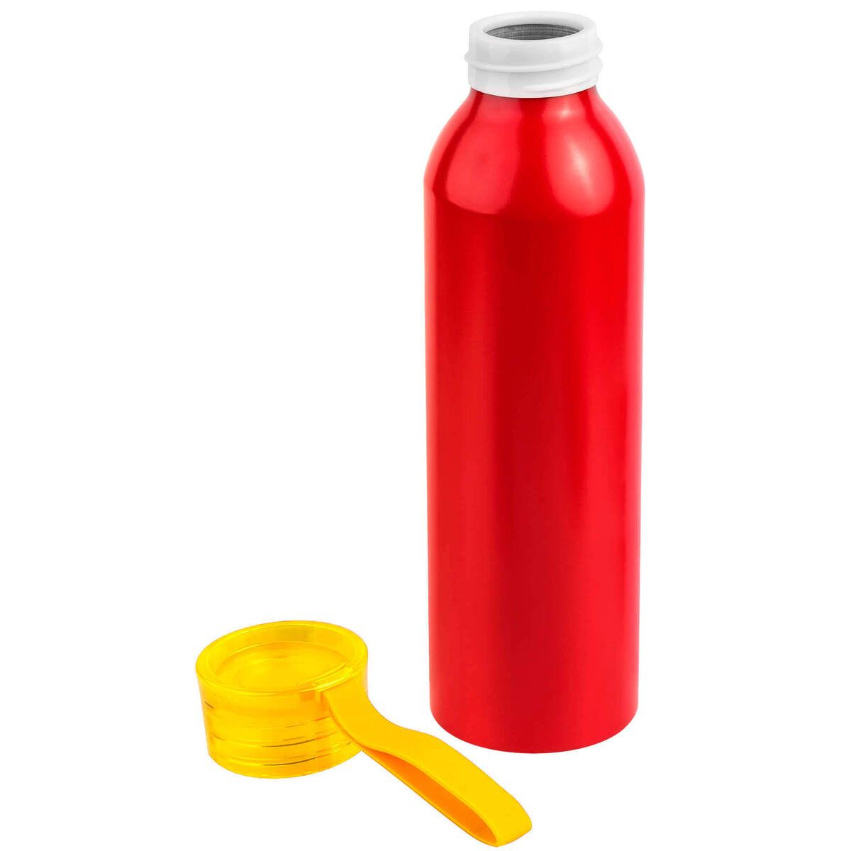 Алюминиевая матовая бутылка с пластиковой крышкой.