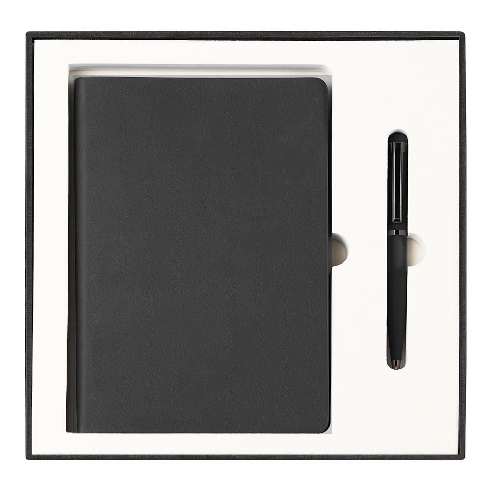Практичный и стильный вариант бизнес подарка.Набор из ручки и ежедневника будет идеальным подарком для многих приятных событий: окончание учебы, продвижение по службе или карьерной лестнице, День рождения, годовщина или любой другой случай.Выбор предметов в наборе - это лишь половина дела. Важно преподнести их так, чтобы подчеркнуть важность момента и ценность подарка. Ваш главный помощник в этом – красивая упаковка. В набор входят: - Металлическая ручка-роллер Attashe с матовым покрытием софт-тач. - Недатированный ежедневник Flexy Soft Touch Latte А5 в мягкой матовой обложке Soft Touch Latte .- Подарочная коробка размером 25,7x25,7 см. с бежевым EVA-ложементом станет практичным дополнением бизнес-подарка.