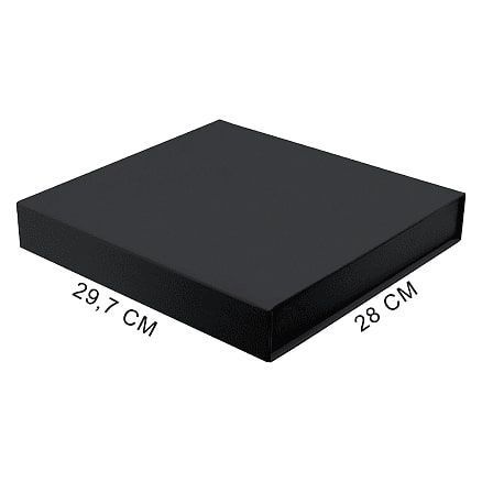 2. Подарочная коробка, размер 29,7*28,0*4,5 см, с магнитным клапаном под индивидуальную вырубку, черная, с черным ложементом,