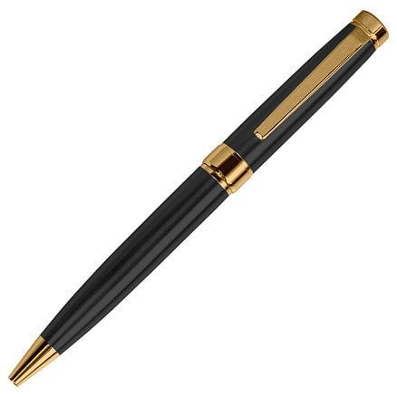 Металлическая шариковая ручка представительского класса с поворотным механизмом. Лаковый глянцевый бордовый корпус, золотистые детали отделки. Корпус ручки разбирается, стержень легко заменить. Стержень с синими чернилами типа Parker. Длина письма 1000 метров. толщина письма 1 мм. Логотип нанесенный методом гравировки будет иметь золотистую поверхность.