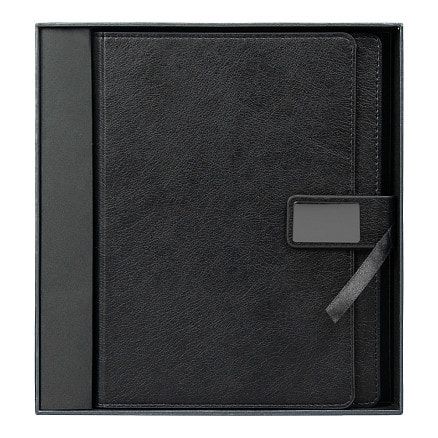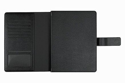 Ежедневник-портфолио имеет карман под визитки или бумаги.