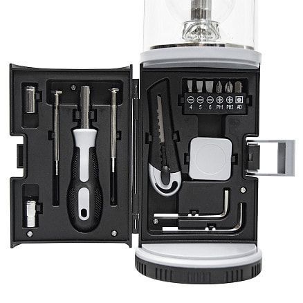 Набор инструментов Tools Lantern — это универсальный комплект, включающий 15 инструментов и встроенную лампу, что делает его идеальным для работы в условиях недостаточной освещенности. Компактный черный пластиковый футляр обеспечивает удобное хранение и транспортировку всех инструментов.