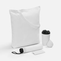 зонт - полиэстер 190t, ручка - пластик; покрытие софт-тач; каркас, спицы - металл; аккумулятор - пластик; крышка термостакана, внутренняя колба - пластик, корпус - нержавеющая сталь; покрытие софт-тач; сумка - хлопок 100%, плотность 210 г/м²; антистресс - вспененный полиуретан