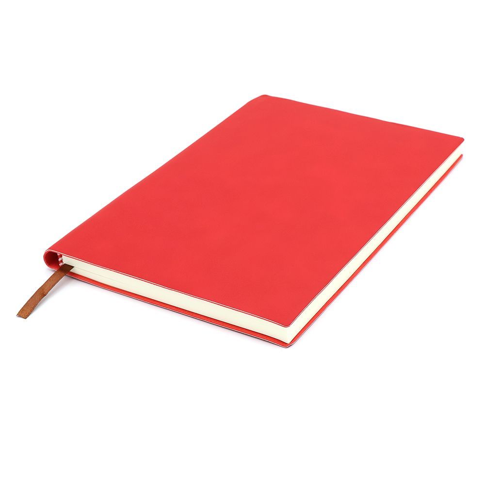 Блокнот формата А5 в мягкой обложке из искусственной кожи. Материал обложки — полиуретан. Текстура — гладкая с эмитацией натуральной кожи. Для удобства переноски ручки в корешке блокнота присутствует ниша, к которой ручка крепится за клип.