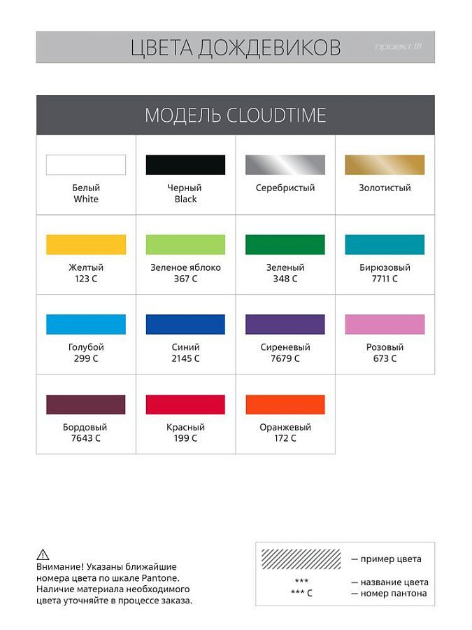 - Цвет дождевика: белый, черный, серебристый, золотистый, желтый, зеленое яблоко, зеленый, бирюзовый, голубой, синий, сиреневый, розовый, бордовый, красный, оранжевый;