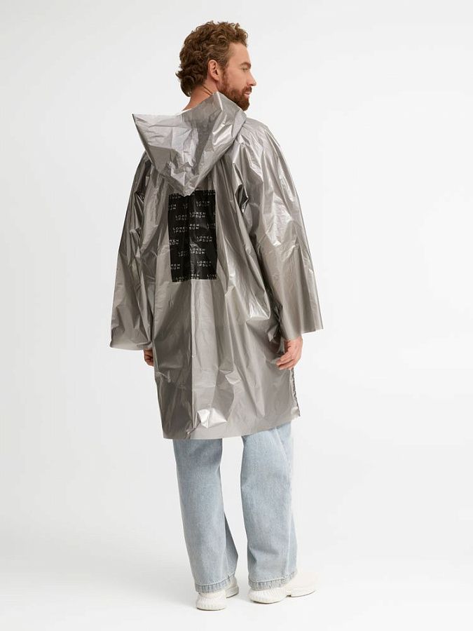 Дождевик-плащ с капюшоном и длинным рукавом из плотного полиэтилена высокого давления (ПВД).