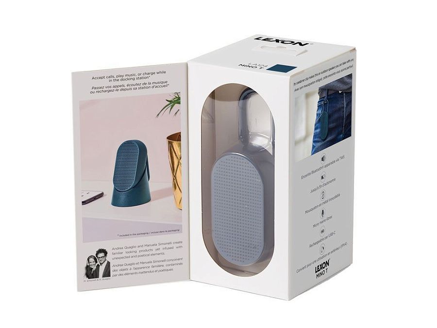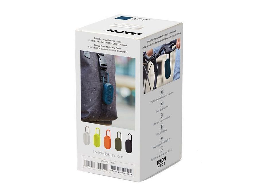 Mino T — это универсальная Bluetooth-колонка, созданная для путешествий. Карабин позволяет легко прикрепить её к сумке или велосипеду. Благодаря элегантному дизайну она гармонично впишется в интерьер, став современным элементом. Оснащённая пассивной басовой системой, Mino T обеспечивает качественное прослушивание, гарантируя сбалансированный и насыщенный звук в дороге. Не беспокойтесь о дожде: сверхпрочное покрытие делает её водонепроницаемой. Наслаждайтесь до 5 часов автономной работы в любых приключениях. Отвечайте на звонки, слушайте музыку или заряжайте колонку через кабель USB-C, установив её на док-станцию.