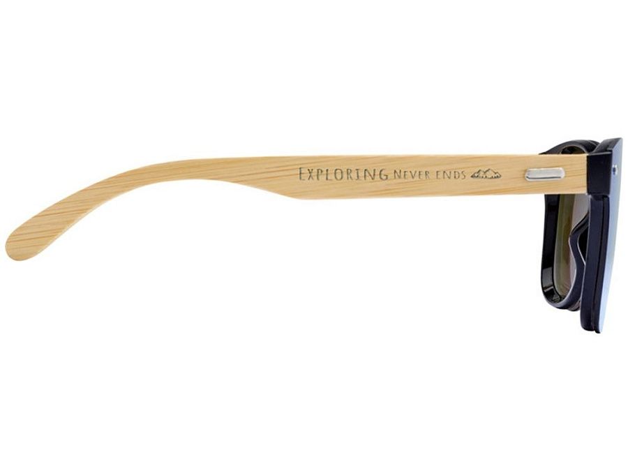 Стильные солнцезащитные очки с цветными линзами и бамбуковыми дужками. Линзы УФ 400 обеспечивают защиту от вредного ультрафиолетового излучения. Соответствует стандарту безопасности ЕС EN12312-1. Бамбук, пластик PC.