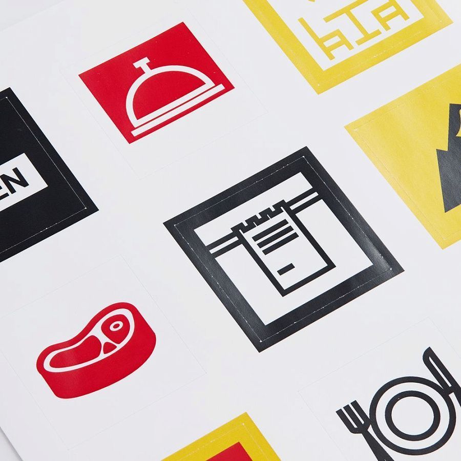 В каждой части общего рисунка изображены главные символы, связанные с отраслью питания.