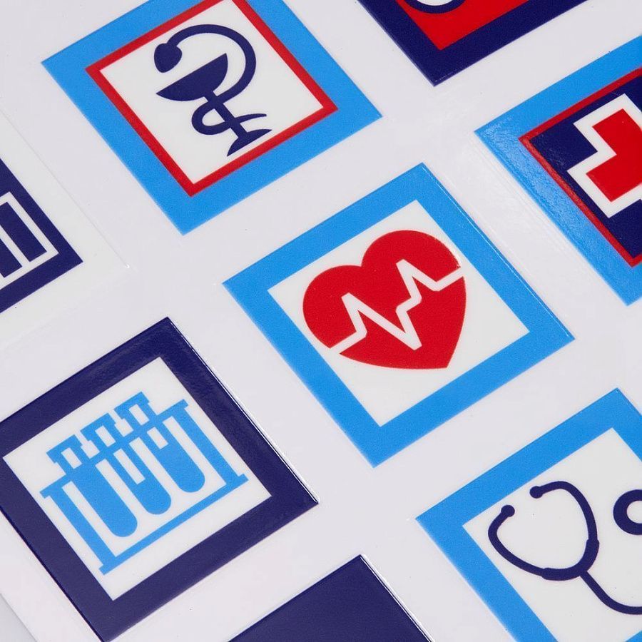В каждой части общего рисунка изображены главные символы, связанные с медициной.