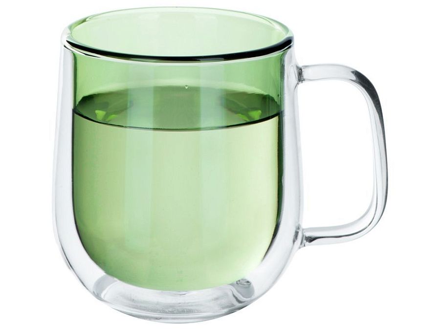 Кружка выполнена из боросиликатного стекла, которое отличается большей прочностью и легкостью, нежели стекло обычное, но при этом столь же безопасно для человека. В этой кружке можно сервировать и горячие, и холодные напитки, поскольку боросиликатное стекло стойко к высоким температурам.