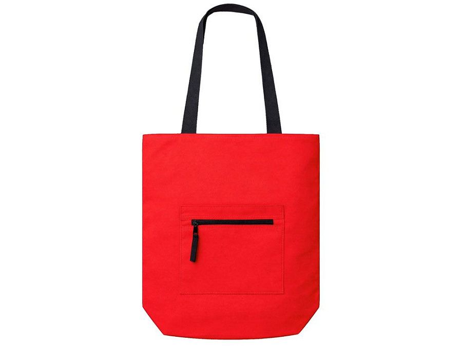 Преимущество этой сумки в наличии застежки молнии на основном отделении - ее содержимое остается закрытым. Донная складка увеличивает вместимость. Снаружи расположен карман на молнии. Парусиновые ручки в тон сумки.
