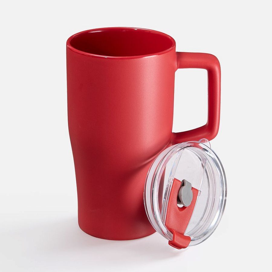 Эргономичная ручка удобно лежит в руке, а прозрачная крышка с отверстием для питья не дает содержимому разлиться на ходу или быстро остыть. Последнее особенно важно с учетом большого объема — 520 мл чая, кофе или какао хватит надолго.