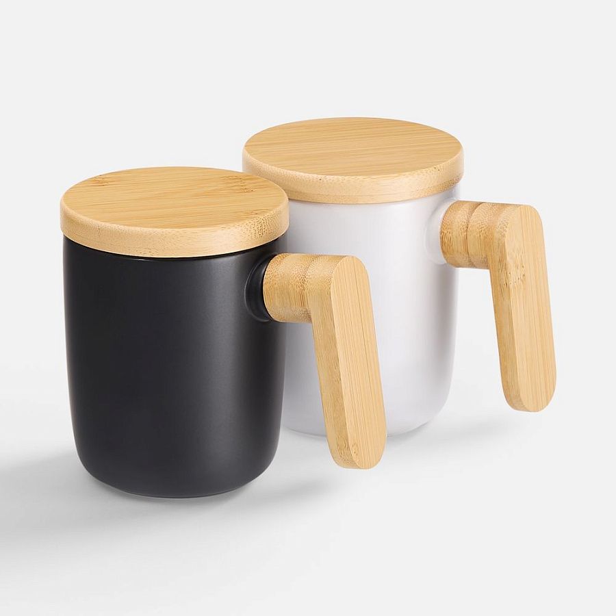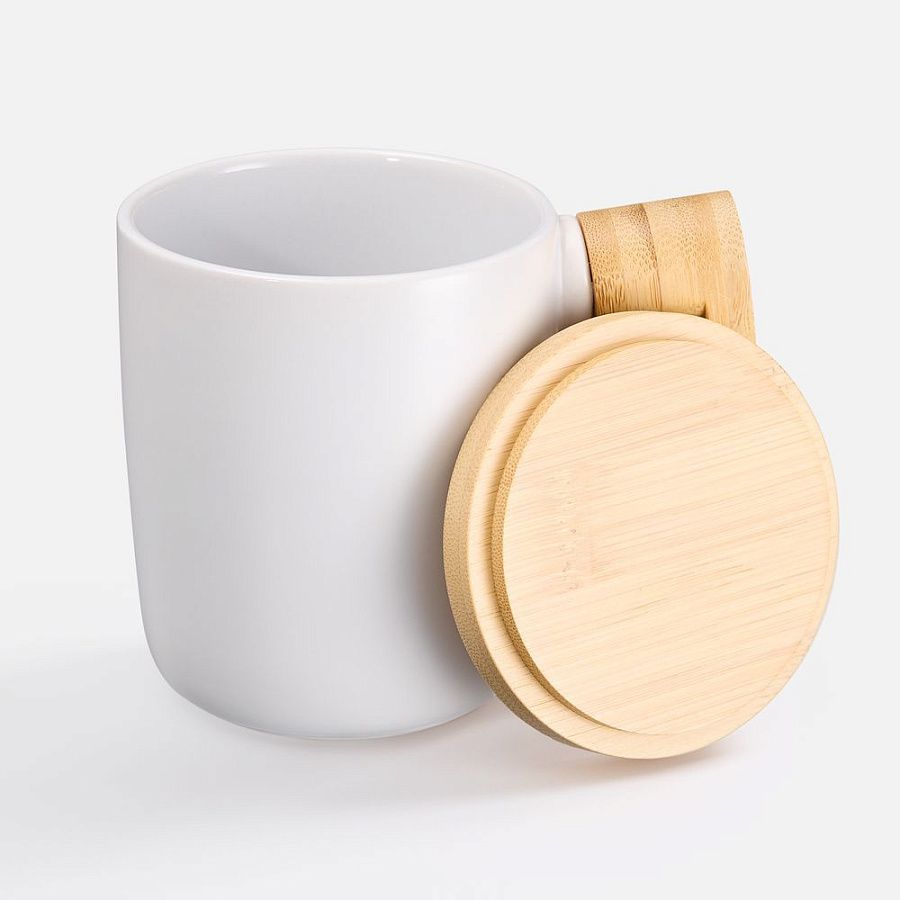 Стильная кружка с крышкой и ручкой из бамбука станет самой любимой на полке! Это идеальный компаньон для продуктивного диалога или умиротворяющего уединения.