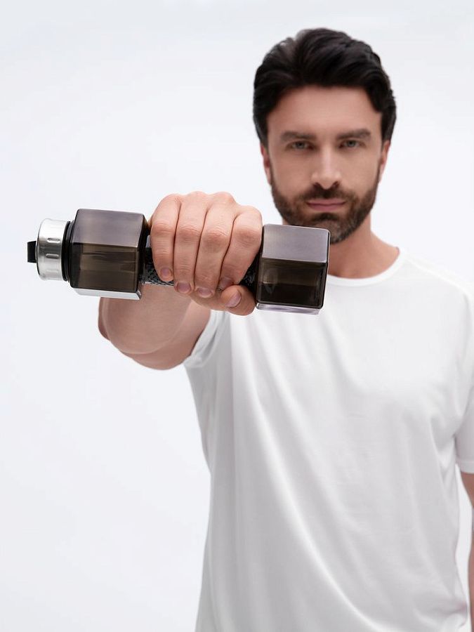 Главная особенность модели — уникальный дизайн в виде гантели. Наполненная водой бутылка превращается в полноценный спортивный снаряд, позволяя проводить легкую разминку или полноценную тренировку в любом месте и в любое время!