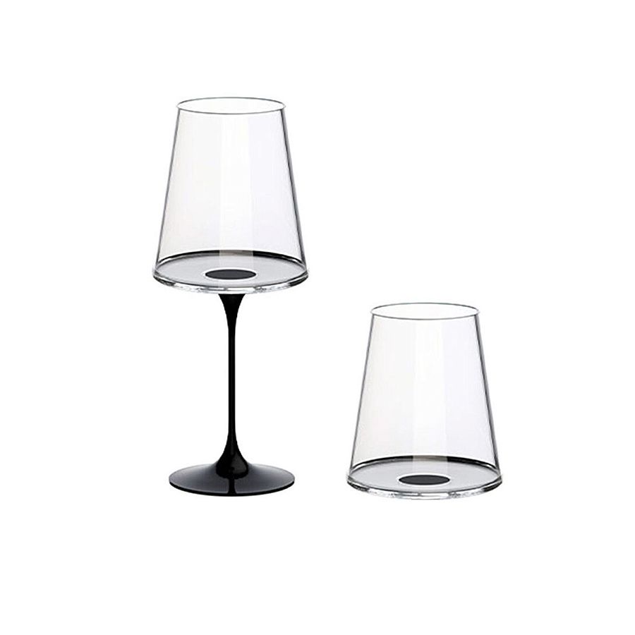 Используйте его как самостоятельный стакан для воды или моментально превращайте в элегантный бокал для красного вина, соединив с изящной алюминиевой ножкой черного цвета. Ваш стиль теперь может меняться так же легко, как и настроение.